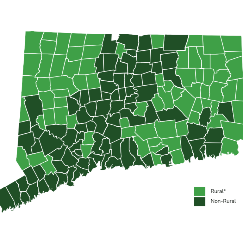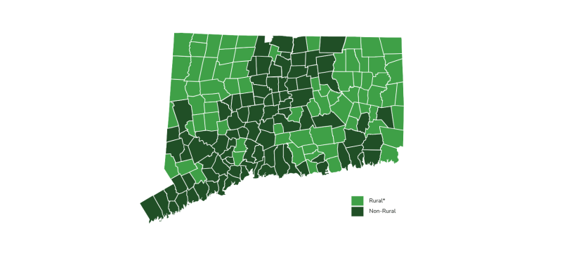Our interactive map outlines towns that meet the state's rural definition, based on population size and density. This tool helps you navigate CT's 77 towns and census tracts designated as rural.